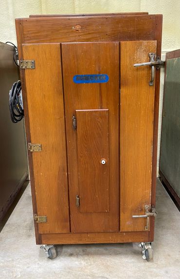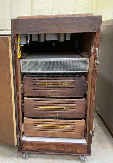 Our collection of Petersime and Humidaire redwood machines we use to hatch Green Peafowl.